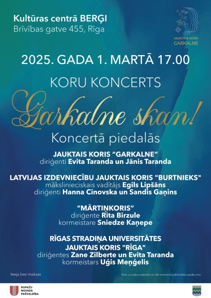 2025. gada 1. martā jauktais koris "Rīga" kuplinās koncertu "Garkalne skan!" kultūras centrā "Berģi".